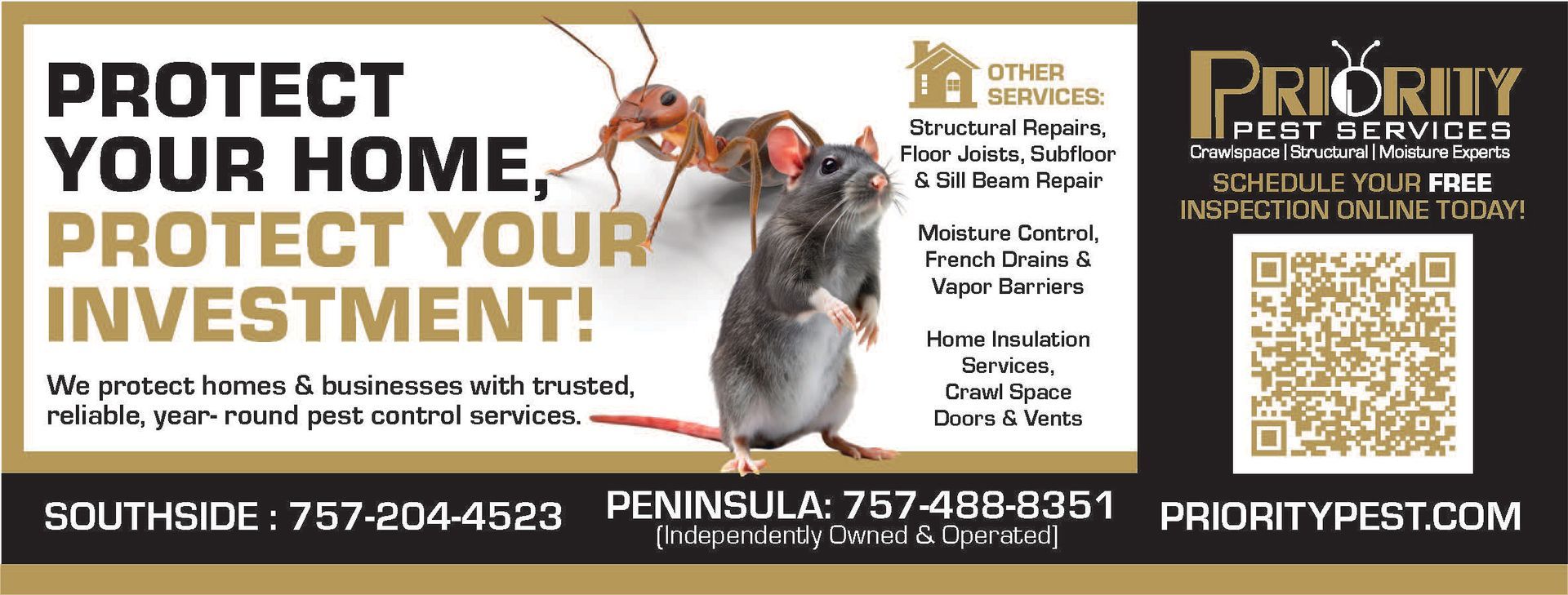 Use these pest control coupons in our service areas in Chesapeake, Virginia Beach, Norfolk, Suffolk, Newport News, Hampton, Williamsburg, Poquoson, and the areas including and surrounding Hampton Roads, and Coastal Virginia.